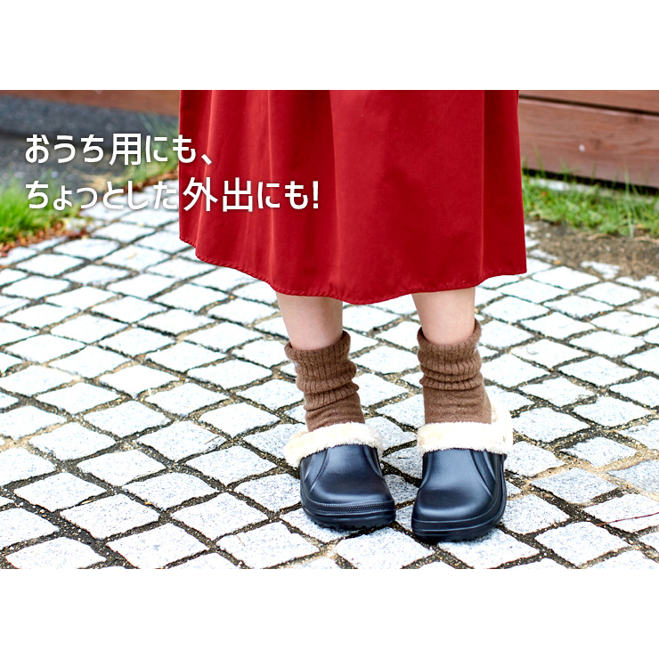 軽くてあったか、つま先から甲部をすっぽりカバーするボア仕様のサボサンダル。サッと履けて便利。寒い季節におすすめです。スナップボタン付きでボアインナーは取り外して洗えます。