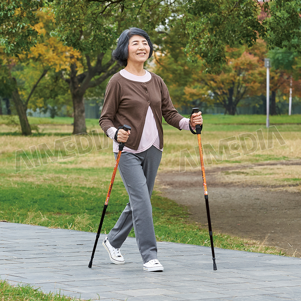 シーンにあわせて伸縮自在。二段スライド方式。持ち運びラクラク軽量タイプ 約295g(1本あたり)すべりにくく持ちやすい、弾力あるEVA樹脂グリップ。体の負担を軽減 クッションスプリング搭載。