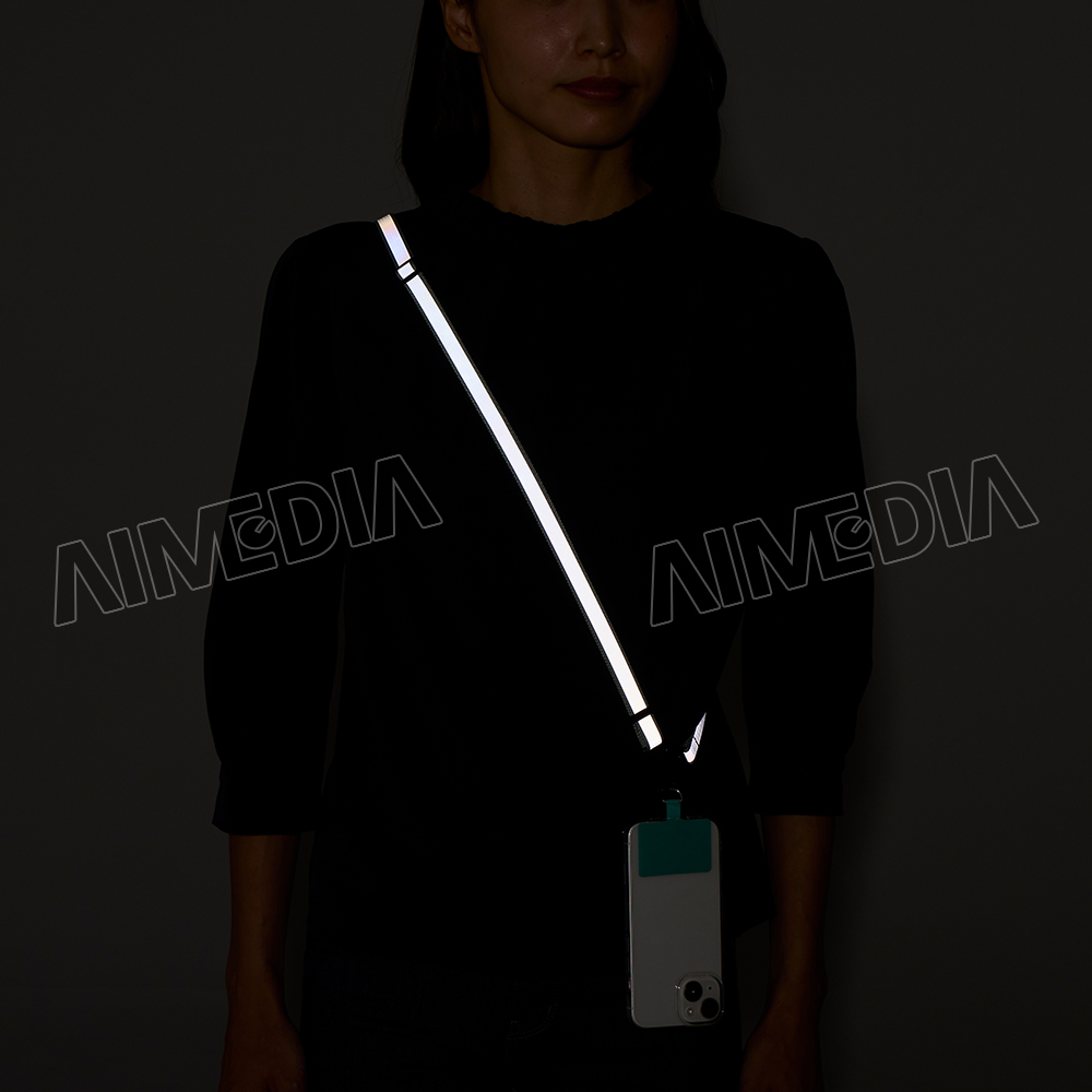 反射加工で夜道対策できるスマホストラップ。車のライトなどに反射して、まわりに存在をアピール!夜のウォーキング・お買い物・犬の散歩に。