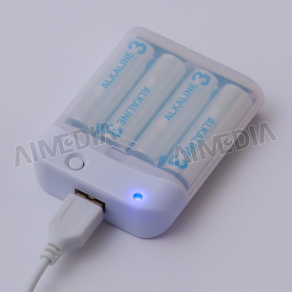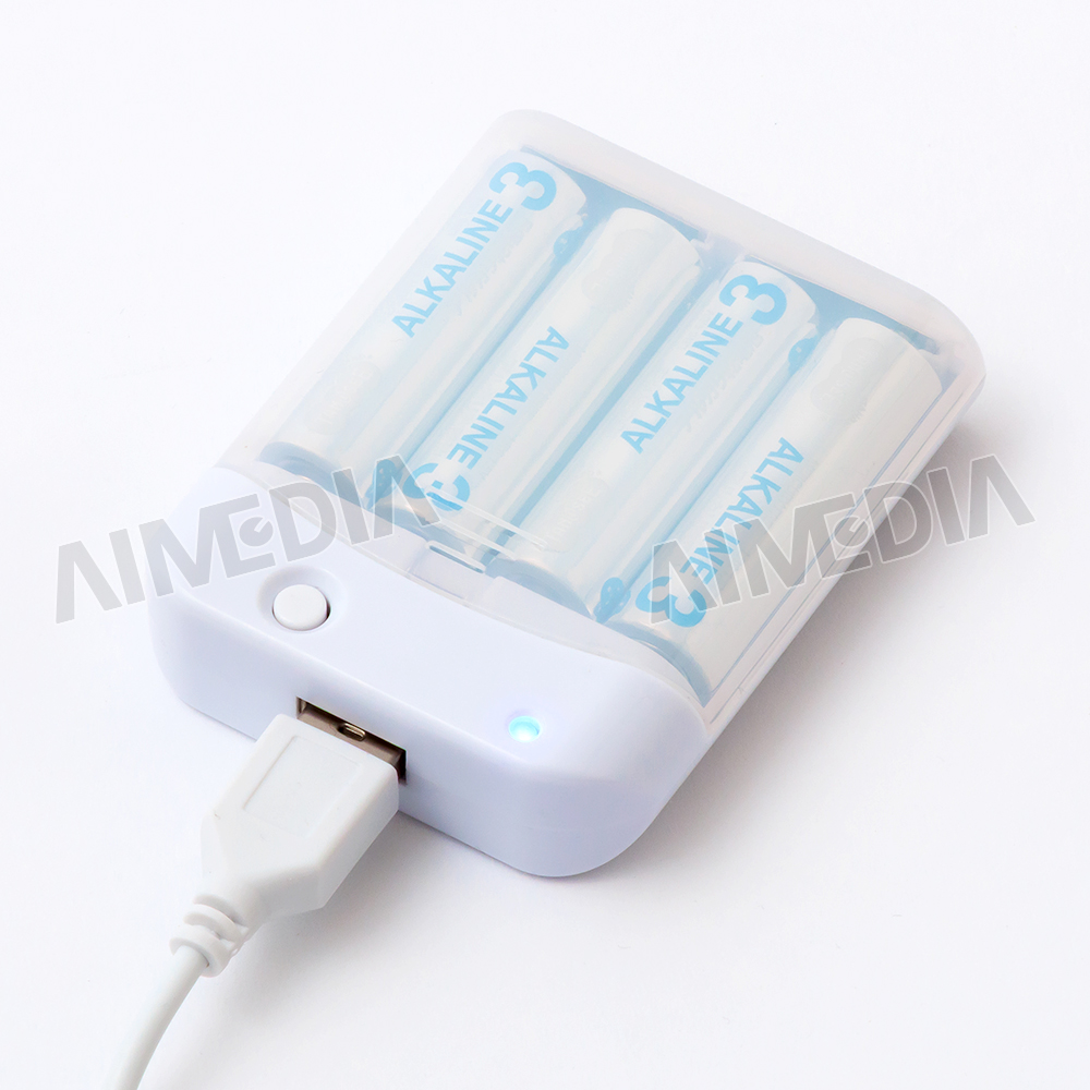 ※LEDランプが点灯していてもスマートフォンが充電されない場合は、乾電池の電圧(容量)が不足している可能性があります。その際は、4本すべての乾電池を新品の単3形アルカリ乾電池に交換して再度ご使用ください。