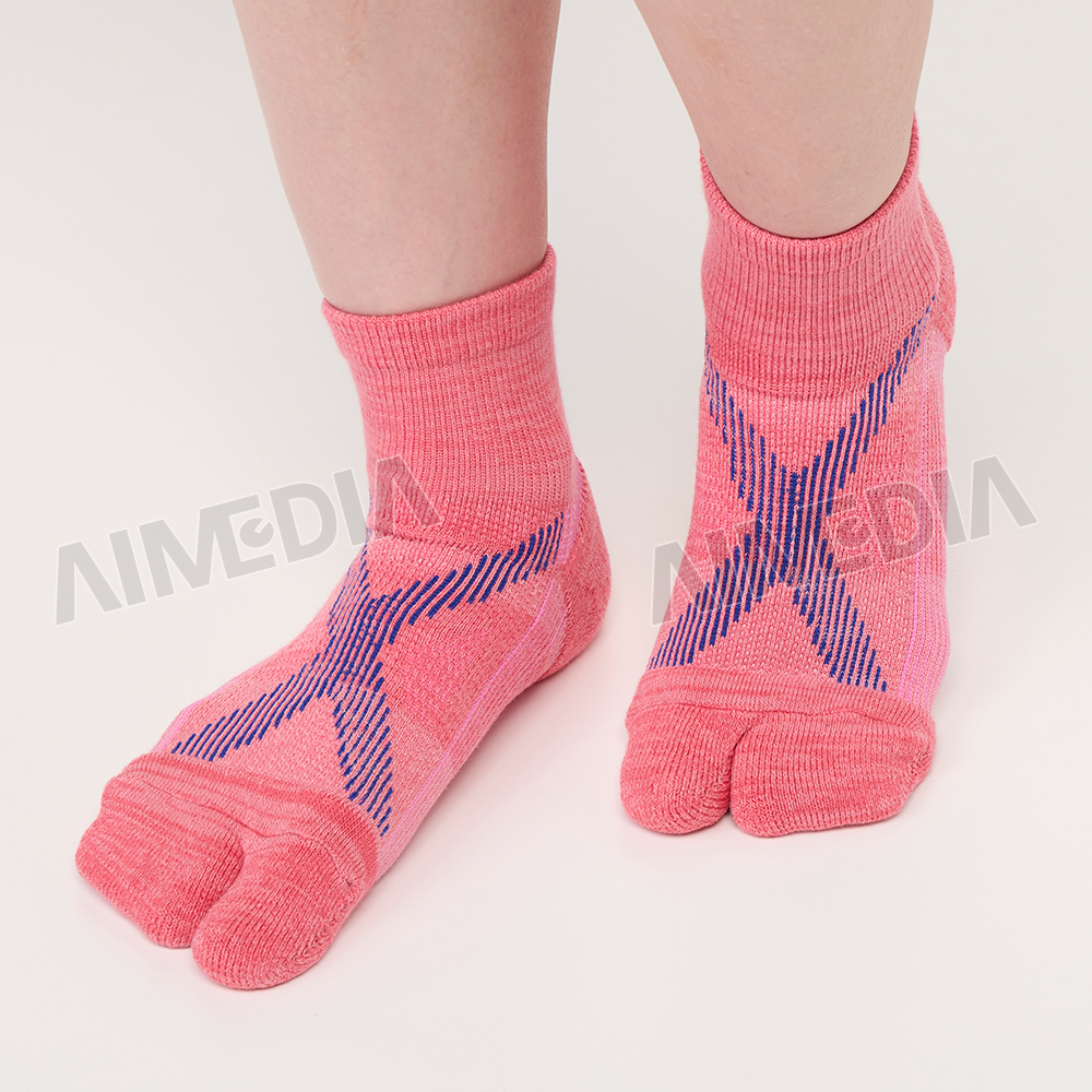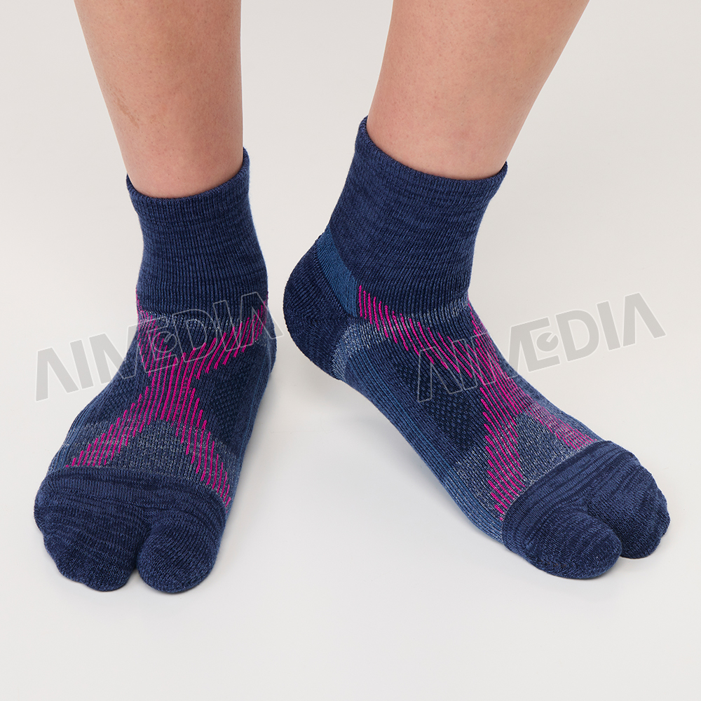毎日のウォーキングをもっと快適に!疲れにくい歩き方をサポートする靴下。足袋型形状により指に力が入りやすく、踏ん張りが効きます。「クロスエイトテーピング」が足のねじれを保護し、アーチをサポート。編み込みの滑り止め加工で内側・外側ともにグリップが効き、歩行中もズレにくい設計です。ヒールロック設計でかかとをしっかりホールド。つま先・かかとはパイル編みでクッション性をプラスして衝撃を緩和。抗菌防臭・消臭・吸水速乾で、ムレやすい足もとも快適に保ちます。
